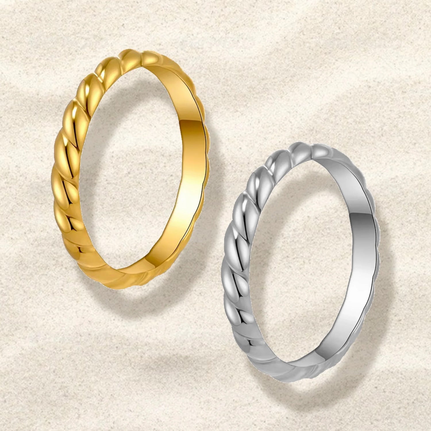 𓇼 La bague Ibiza est fabriquée en acier inoxydable plaqué or 18k donc ne ternit pas et est hypoallergène.