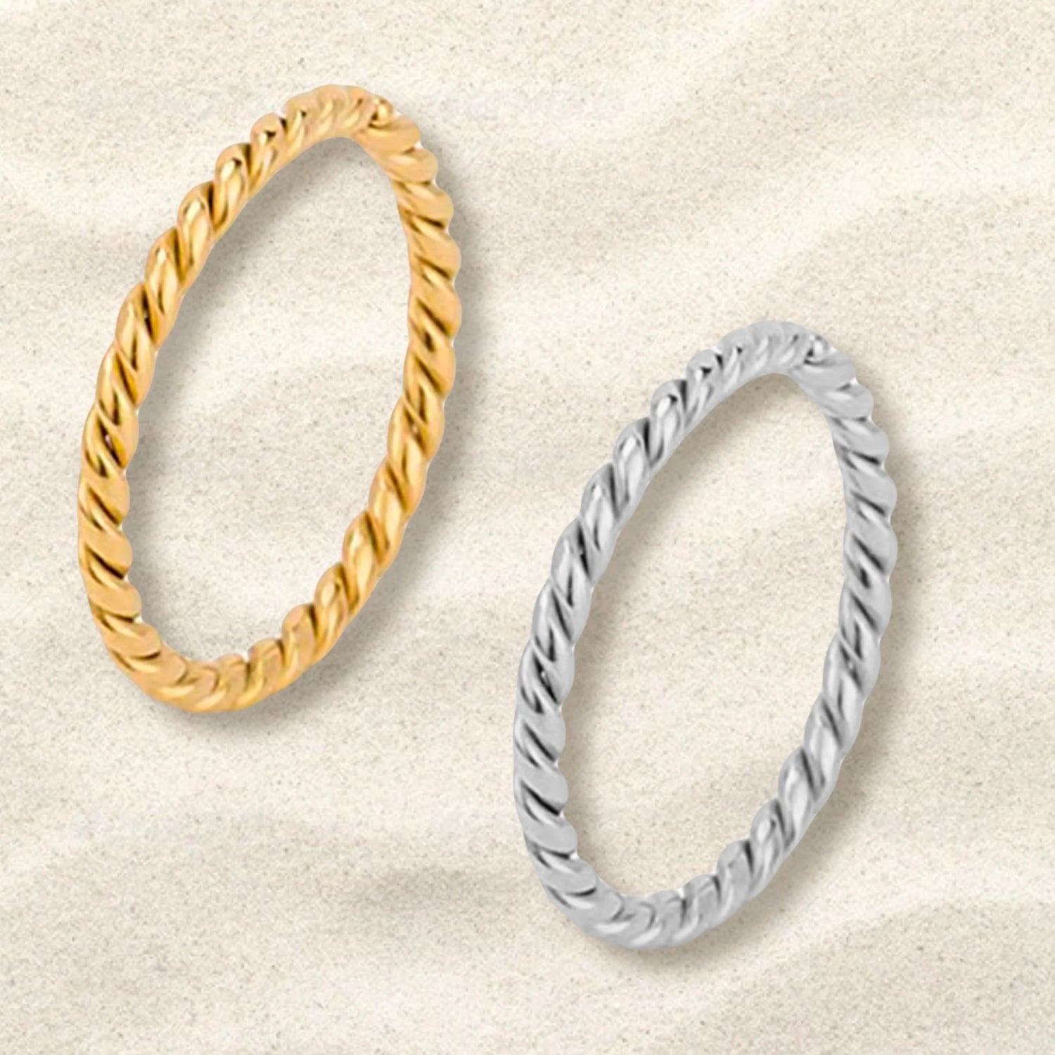 𓇼 La bague Rope est fabriquée en acier inoxydable plaqué or 18k donc ne ternit pas et est hypoallergène.