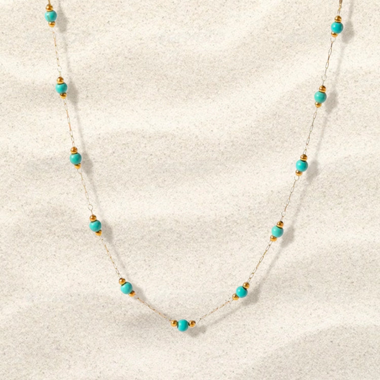 𓇼 Le collier Lagoon est fabriqué en acier inoxydable plaqué or 18k donc ne ternit pas et est hypoallergène.