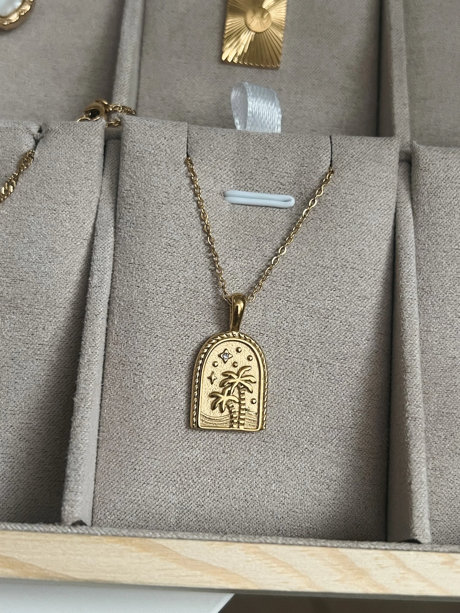 La chaîne Palms est fabriquée en acier inoxydable plaquée or 18k. Conçu pour t’accompagner dans tes activités quotidiennes sans ternir et causer d’allergies.