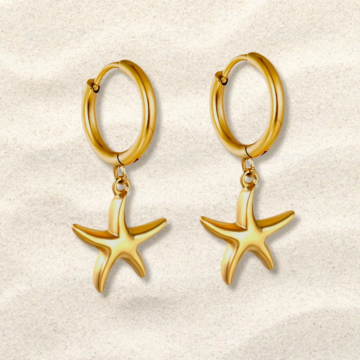 𓇼 Les boucles d’oreilles Starfish sont fabriquées en acier inoxydable plaqué or 18k donc ne ternissent pas et sont hypoallergènes.